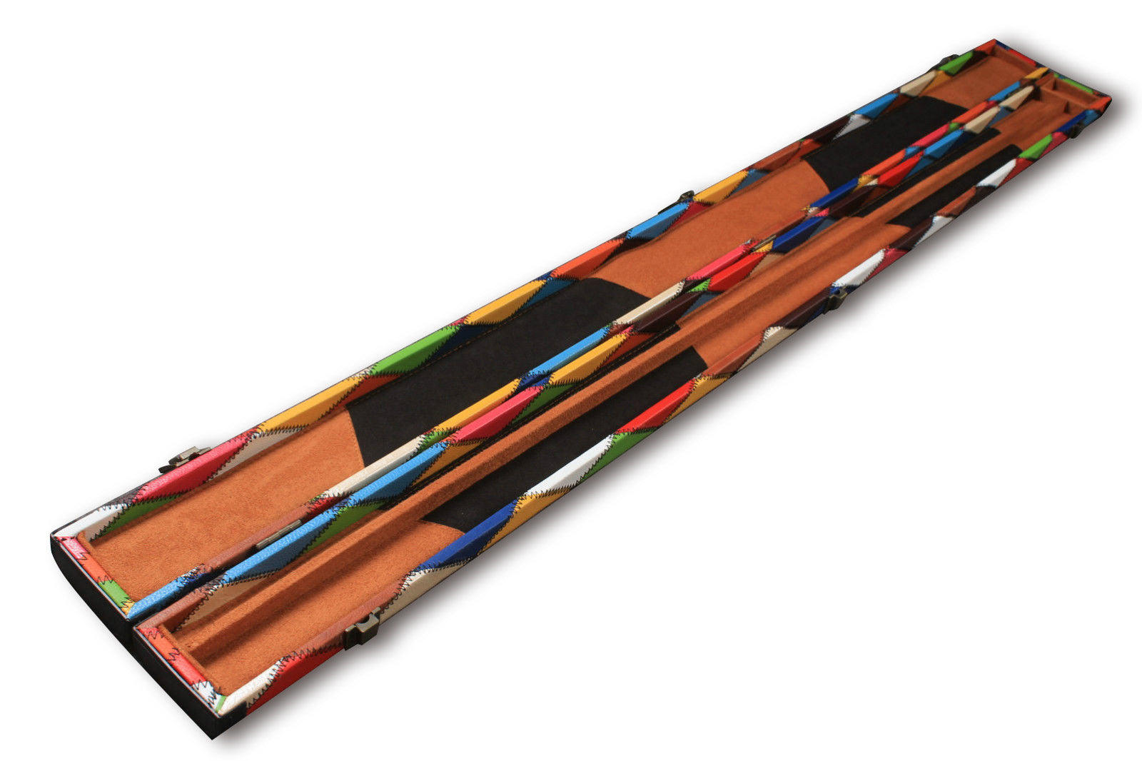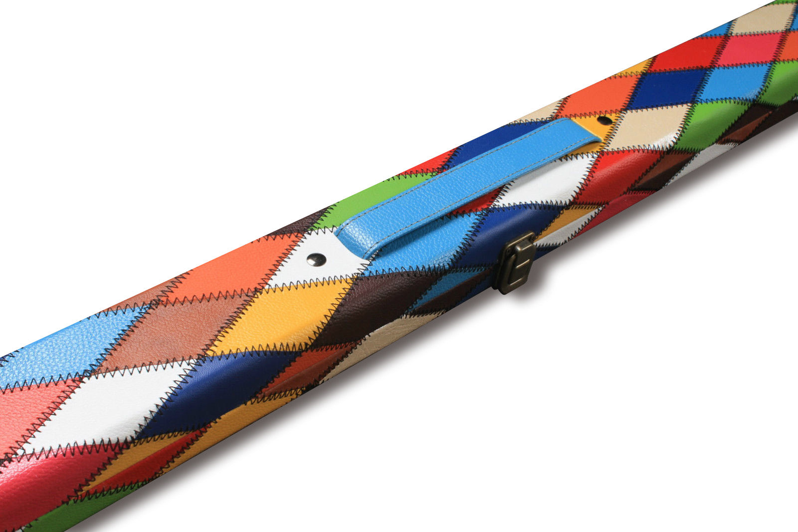 3/4 HARLEQUIN HANDMADE HARD DIAMOND CUE CASE MULTI COLOURED - SNOOKER OR POOL CUES E6121-5