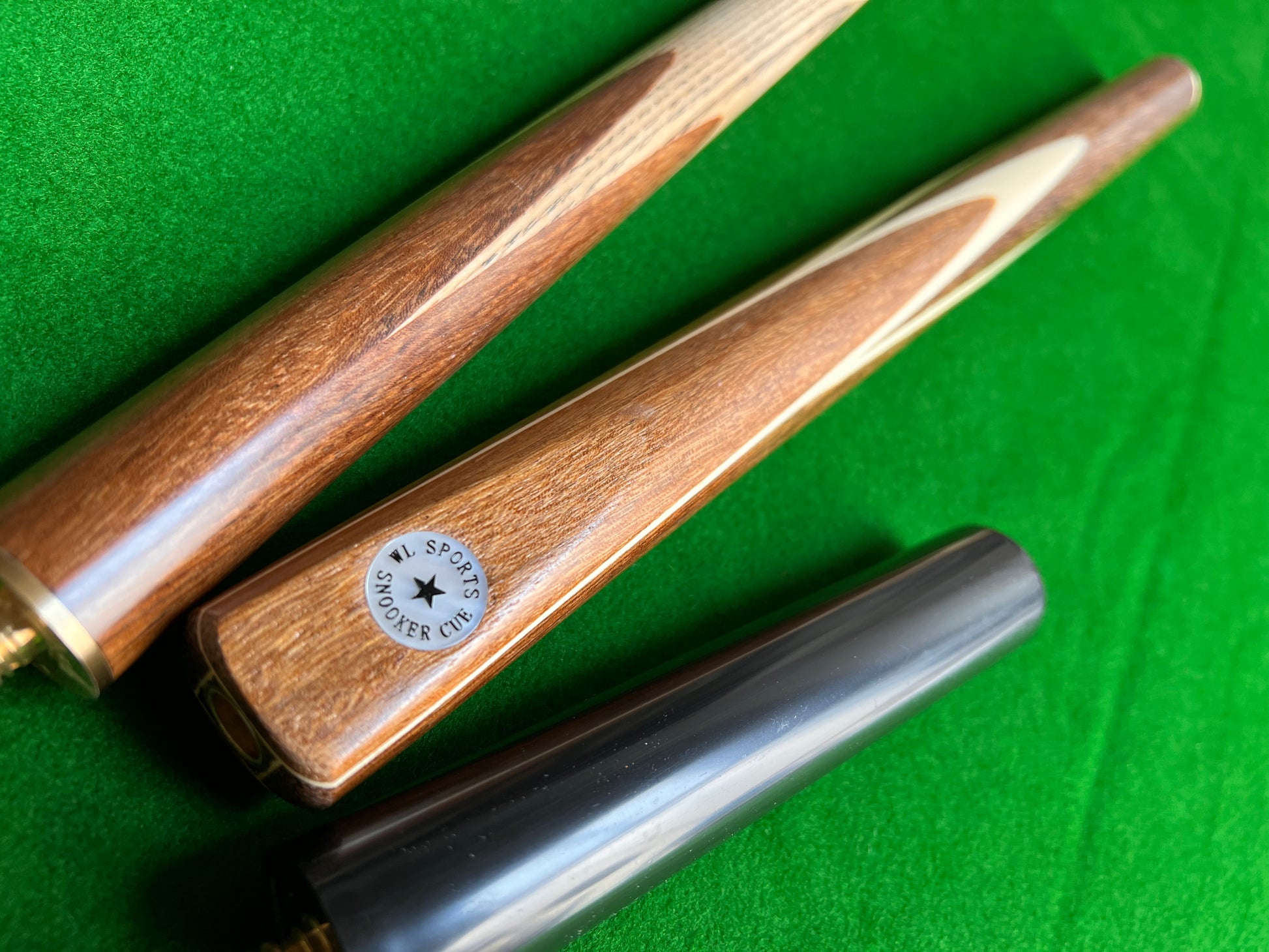For auction is a 3/4 jointed handmade English pool cue. The shaft is silky smooth and feels nicely balanced when in the hand. This cue is fantastic value for money and you do not need to pay silly money for top brand cues as these play as good as anything out there on the market.