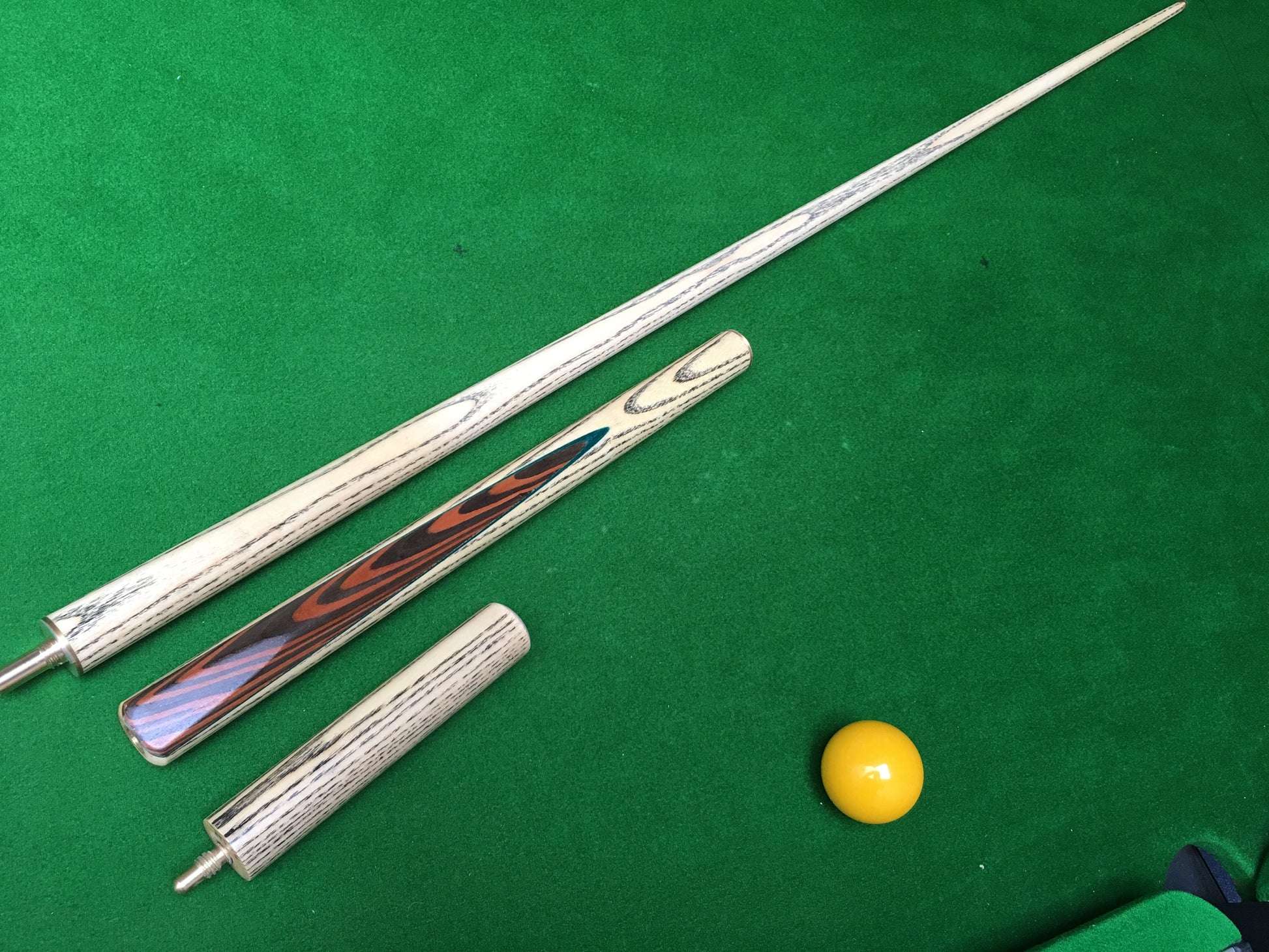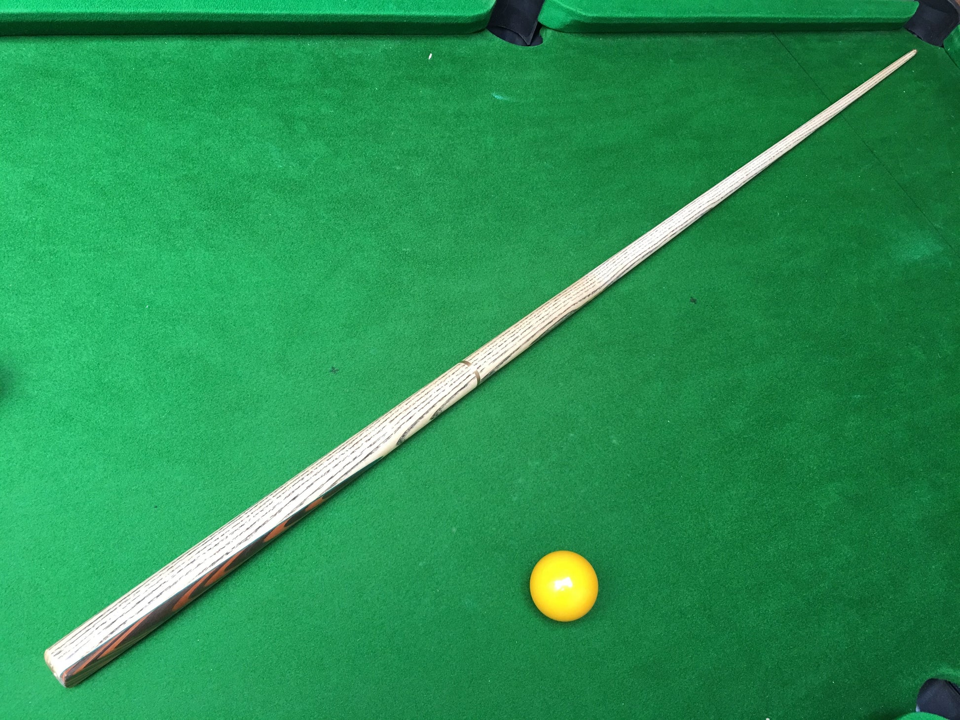 For auction is a 3/4 jointed handmade snooker/pool cue. The shaft is silky smooth and feels nicely balanced when in the hand. This cue is fantastic value for money and you do not need to pay silly money for top brand cues as these play as good as anything out there on the market. 3/4 split with brass joint and matching grains at joint.