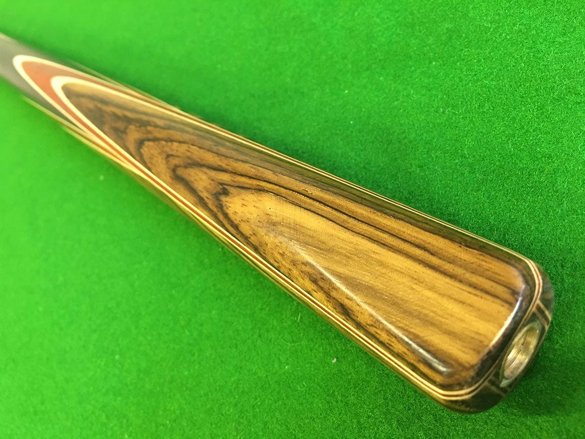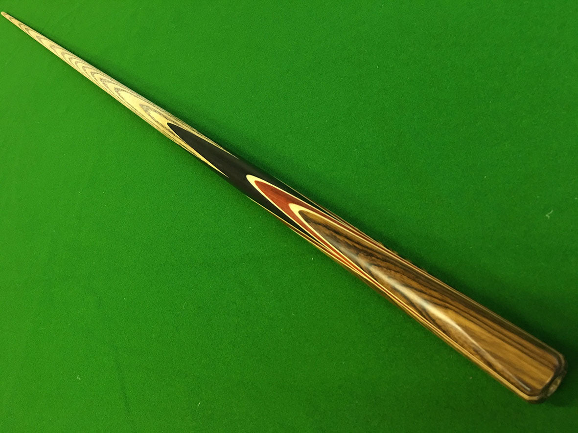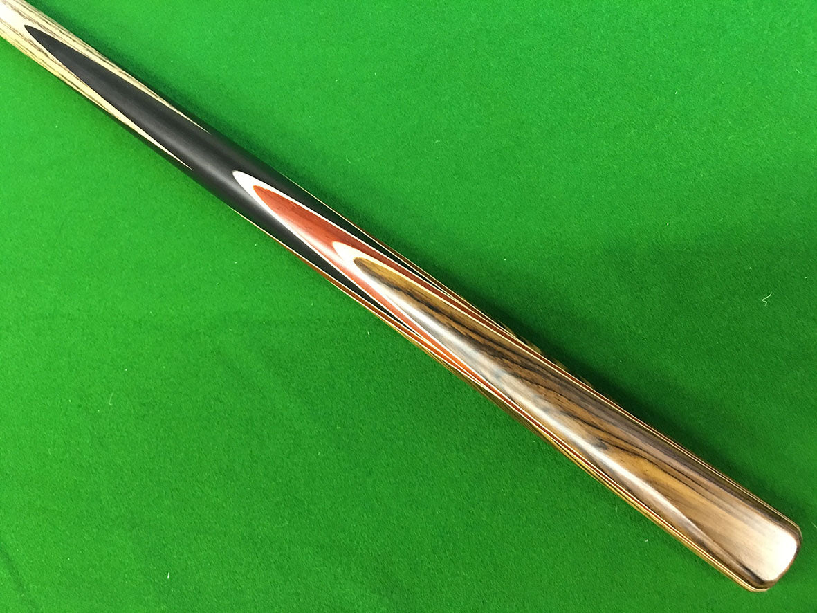 This is a really really nice example of a handmade and hand spliced Snooker cue. The shaft is well seasoned Ash hand spliced into black Ebony wood with all level splices. The cue is then spliced with 4 splices of Zebrano wood. You will not find a better value for money cue than this anywhere.