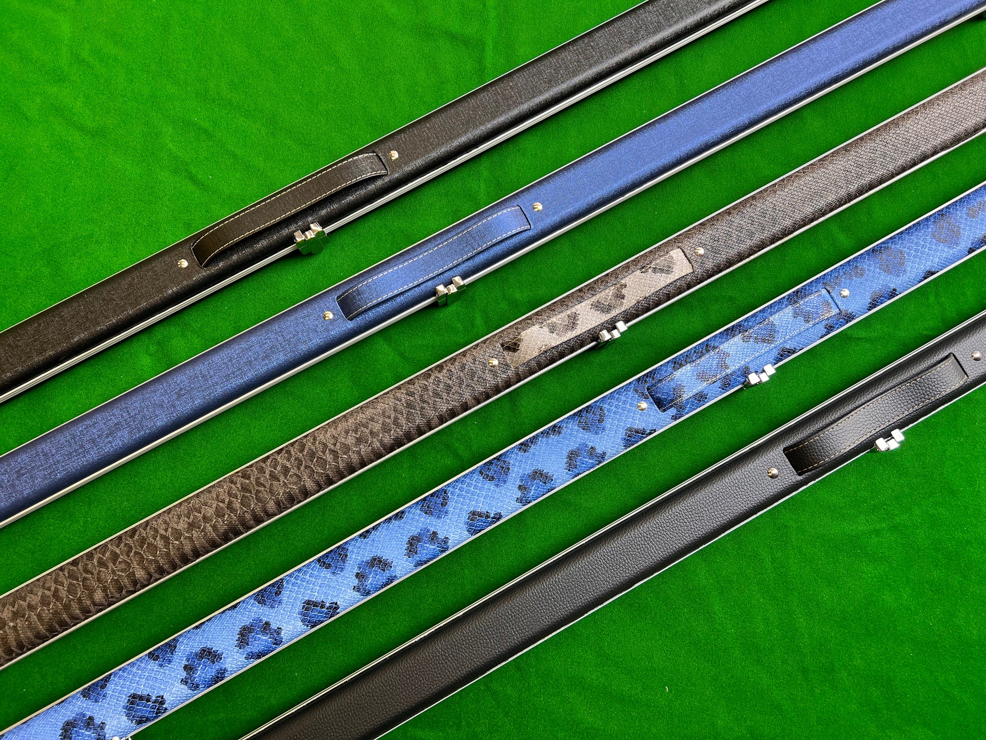 These cases are of aluminium construction, upholstered with a variety of hard-wearing leather look materials. Beautiful-looking cases that provide excellent cue protection.